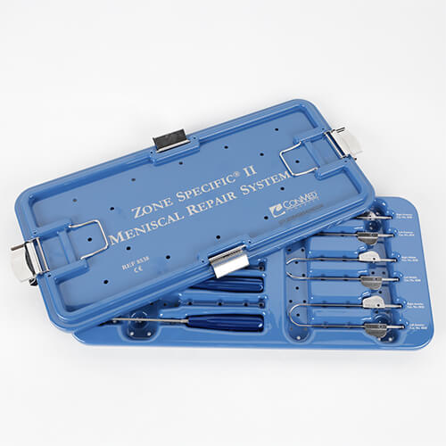 Este sistema está diseñado específicamente para la reparación meniscal con técnica dentro-afuera.